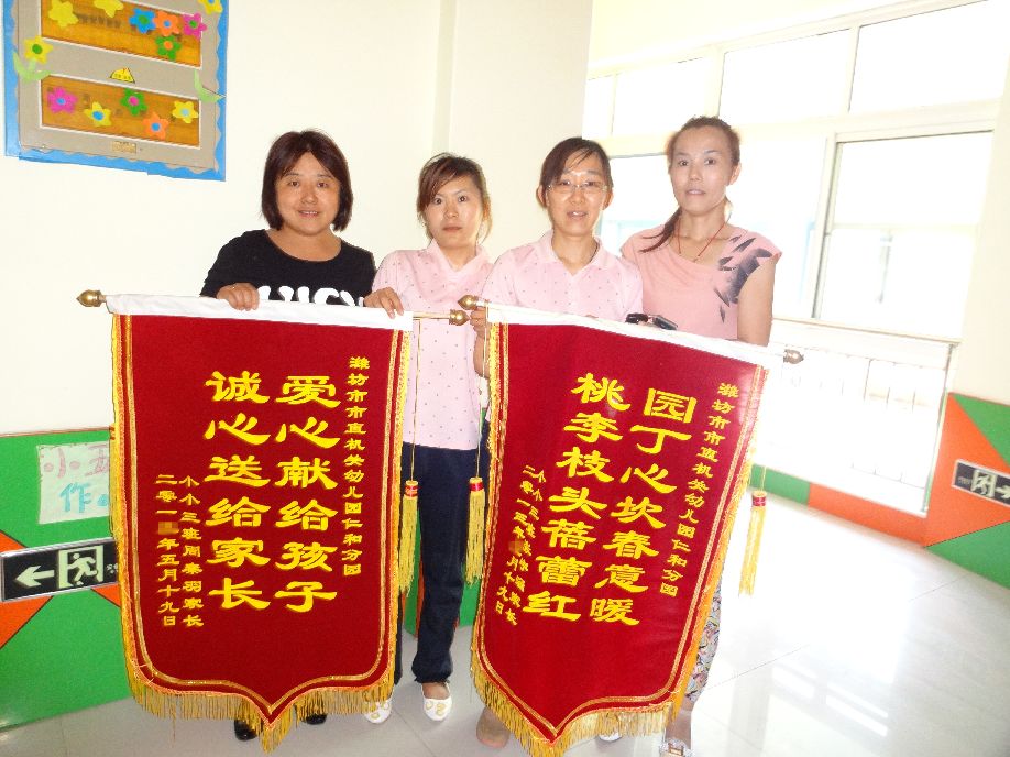 桃李枝头蓓蕾红”,这至诚的话语道出了小小三班众多家长的心声。5月28日一大早潍坊市机关幼儿园仁和分园小小三班两位家长带着两面锦旗一起送到了小小三班两位老师的手中。