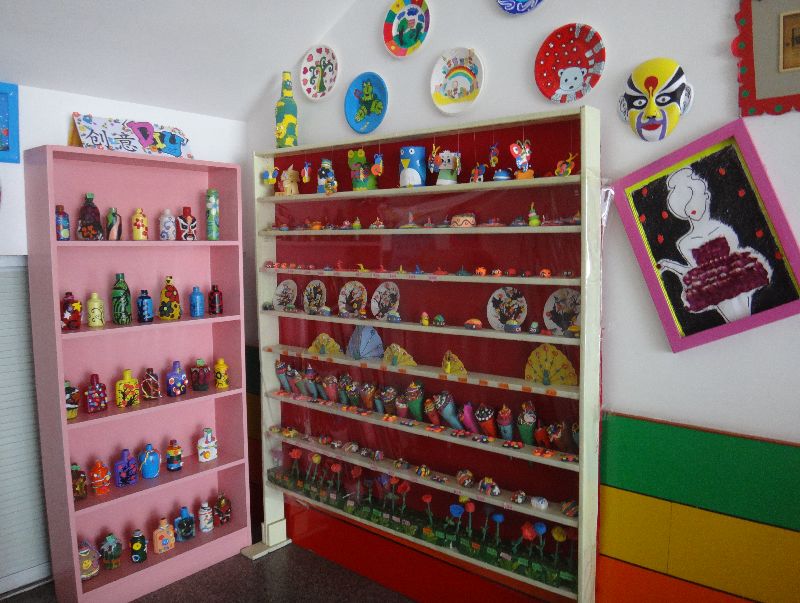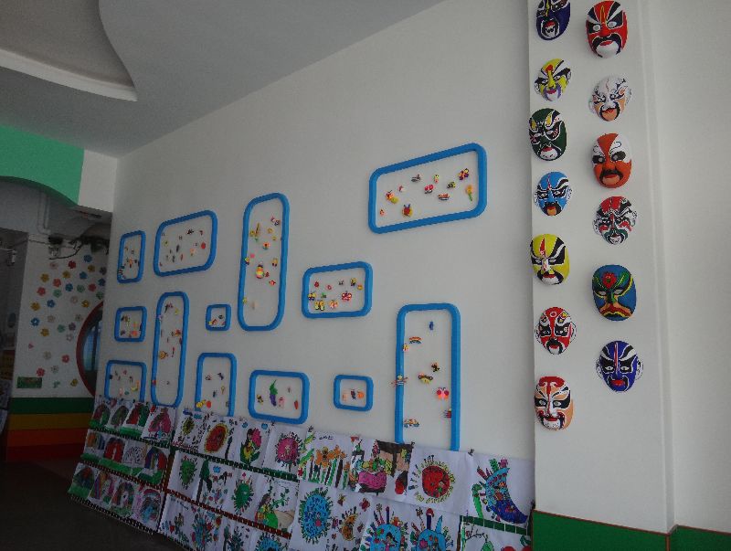 文化路园的一楼活动大厅最近发生了明显的变化,东西两侧的展示墙焕然一新,我园领导通过开展各种创意手工活动,把老师的许多优秀作品都在我们的活动大厅做了展览,有精致的线条画,绚丽多彩的蜡笔画,主题鲜明,立意新颖。老师们的创意太空泥也非常精致,悬挂在画框上栩栩如生,蜜蜂蝴蝶飞在万花丛中,引得家长和孩子一起驻足观赏。