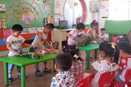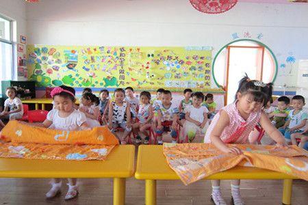 6月17日上午潍坊市机关幼儿园潍城分园的老师根据幼儿年龄特点和发展水平举行了中班级部幼儿自理能力比赛。比赛项目包括:叠被子、叠衣服和整理书籍。