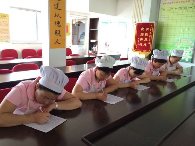 我园始终把提升伙房人员的业务能力和工作素养作为一项重要工作来抓。通过专业知识培训、操作技能考核、理论知识测试等形式,不断提高伙房人员的业务知识,规范日常常规操作,试卷题型有填空题和选择题,内容也贴近日常工作范畴。虽然题目范围广,形式多,伙房人员都十分珍惜这样的培训,早就做了精心的准备,个个胸有成竹,交上了一份份满意的答卷。 通过学习、考试,不仅使伙房人员认识到自己工作的重要性,更让大家明白了如何做好本职工作,为食品卫生安全工作打下坚实的基础。