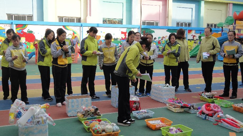 为更好的贯彻落实《纲要》精神,进一步提升教师自制玩教具水平,充分发挥自制玩教具在幼儿教育教学、促进幼儿体能发展中的作用,2014年11月7日,潍坊市机关幼儿园潍城分园开展了教师自制户外玩教具比赛活动。