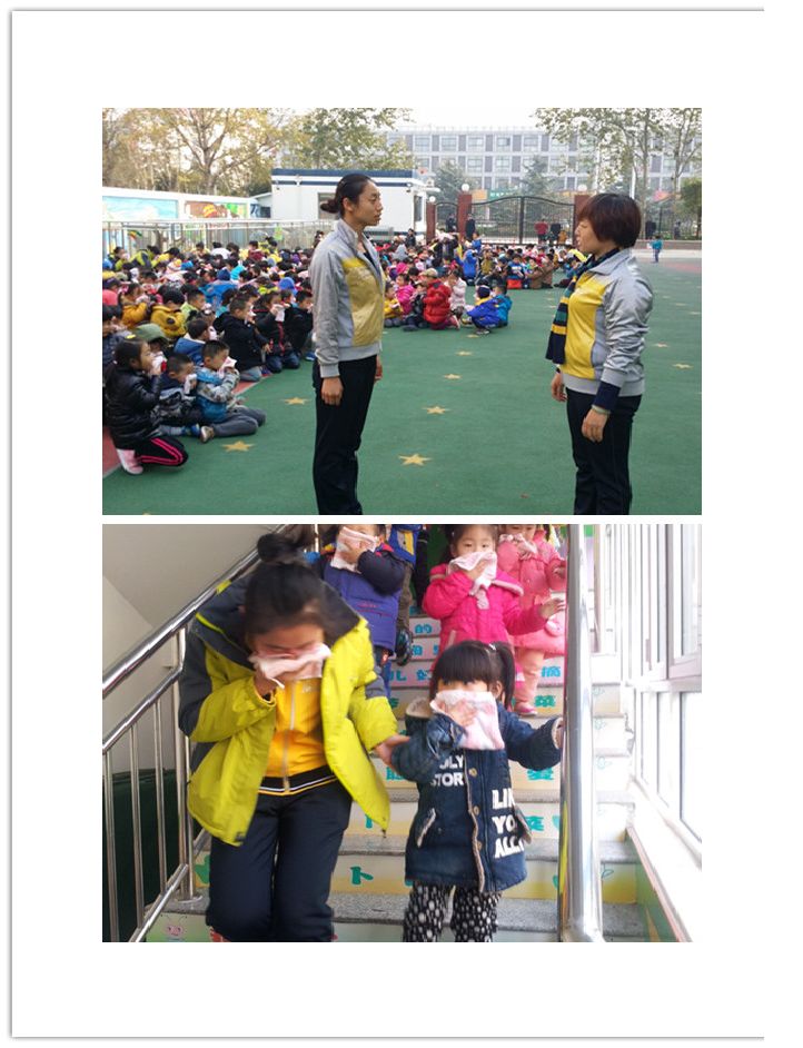 本着“幼儿生命安全第一”的原则,为提高教师和幼儿遇到突发事件的避险能力和自救能力,潍坊市机关幼儿园北海园于2014年11月19日开展了消防演练活动。