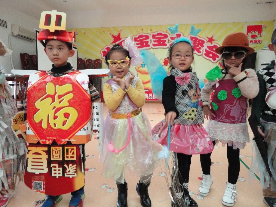 活动中,孩子们展示了利用废旧材料制作的五花八门、各式各样新奇的服装。平时不要的碎布、报纸、塑料袋、光盘、米袋、挂历等废旧物品经过家长们的精心设计和制作后,变成了漂亮别致的服装、帽子、裙子等等。一场由家长们自主设计、大胆构思,精心组织排练的环保时装秀精彩上演。伴随着动感十足的音乐节奏,孩子们在舞台上各自展示了环保理念带来的活力和生机。