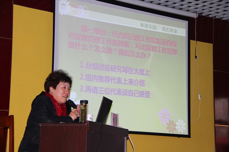 管理是一个单位发展永恒的主题,创新则是幼儿园管理真正的灵魂。为切实提高保教人员班级管理水平,加快教师的专业化成长步伐,丰富班级管理经验,创新管理思维模式,潍坊市机关幼儿园于2015年1月19日,邀请了山东省著名幼教专家刘莹园长,为班主任以上人员进行了《幼儿园的管理与评估》专题讲座,进一步开拓了教师的视野,夯实了理论基础。