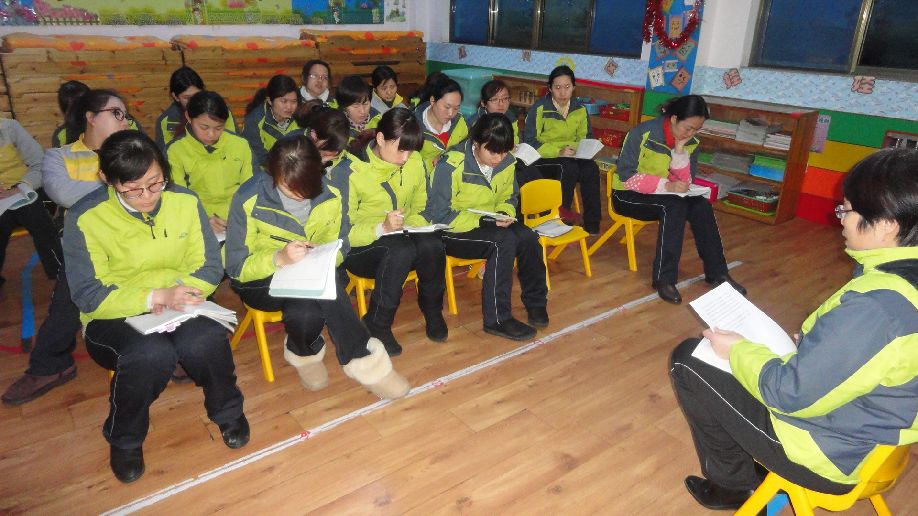 为进一步优化幼儿园一日保教工作,提升教师对幼儿一日活动的组织能力。2015年2月2日,潍坊市机关幼儿园文化路分园对年轻教师进行了“细化一日保教流程,提高保教质量”培训活动。