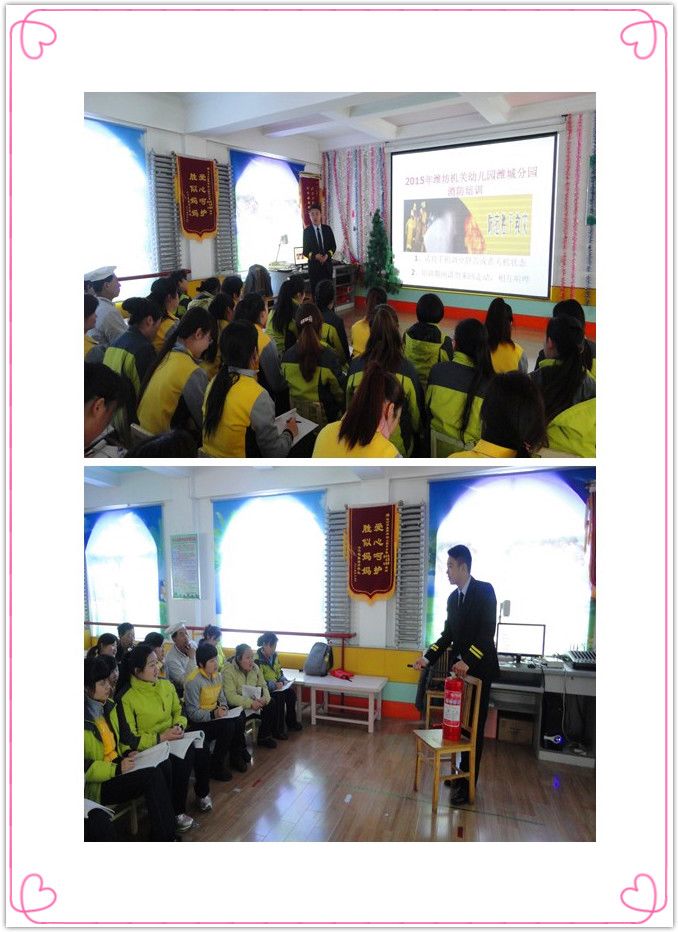 为了增强教师的消防安全意识,具备防范、自救能力,4月2日下午,潍坊市机关幼儿园潍城分园特邀市防火中心的崔教官,对全体教职员工进行了消防安全知识培训。