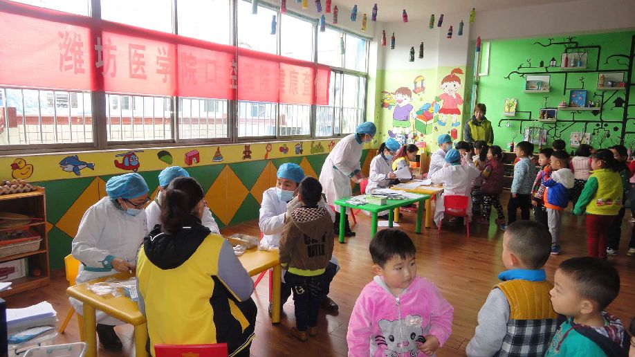 2015年4月3日上午,潍坊市机关幼儿园文化路分园迎来了潍坊医学院口腔医院的医生们,他们为全体幼儿进行了口腔检查。