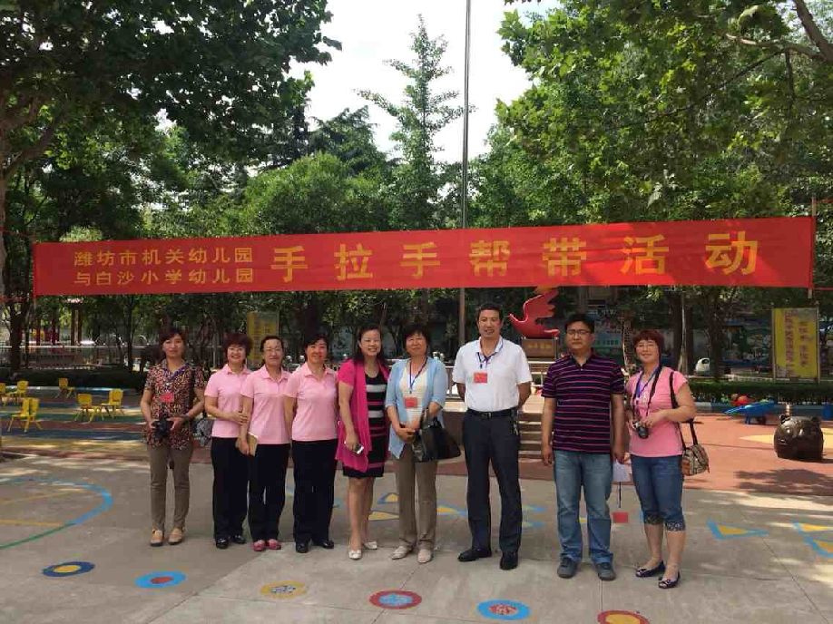 白沙小学幼儿园是潍坊市机关幼儿园的帮扶结对对象,为促进教育均衡发展,增强城乡幼儿园间的互动交流,5月27日,白沙小学幼儿园一行五人在集团张玉瑧书记、王晖副园长、王芹副园长的带领下,到潍坊市机关幼儿园开展结对帮扶活动。