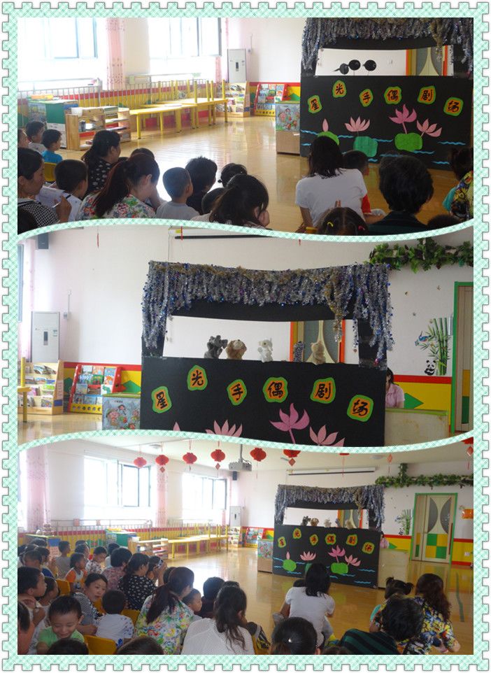 活动在精彩的舞蹈《童心鼓韵》中开场,《小蝌蚪找妈妈》、《小羊和狼》、《咕咚来了》等孩子们最熟悉的童话故事被老师们搬上舞台。孩子们有序地坐在凳子上,目不转睛地欣赏着这些形式新颖、内容有趣、老师自编自导自演的手偶剧,徜徉在故事情节里。