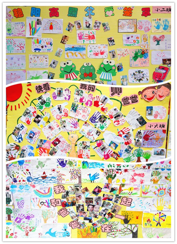 2015年6月15日,为迎接即将到来的父亲节,潍坊市机关幼儿园潍城分园组织了主题为“父与子,画与话”的手印画活动。通过将父亲和孩子的手印印在一张画纸上,创造出各类有趣的图案,再将父亲想对宝贝说的话写在作品上,形象地表达父亲对孩子的爱。