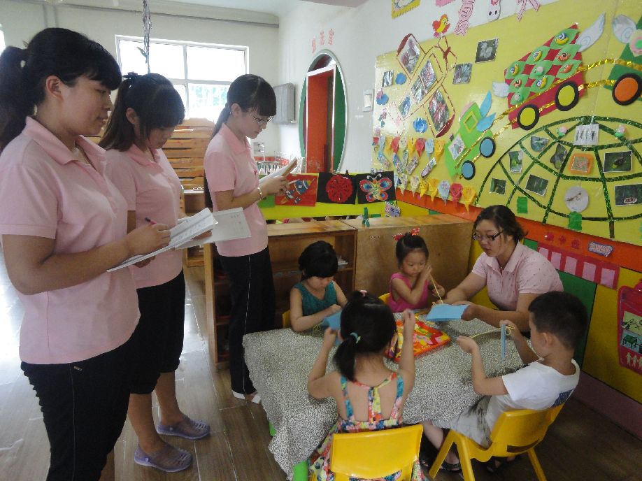 2015年8月17日上午,潍城分园的老师们远程学习了《区域活动中如何观察孩子》这一专题内容。为了使专家的教学建议与实际教学活动进行有效对接,在听取完专家的讲解后,教研组长利用下午时间组织老师们进行了区域活动现场观摩交流活动。