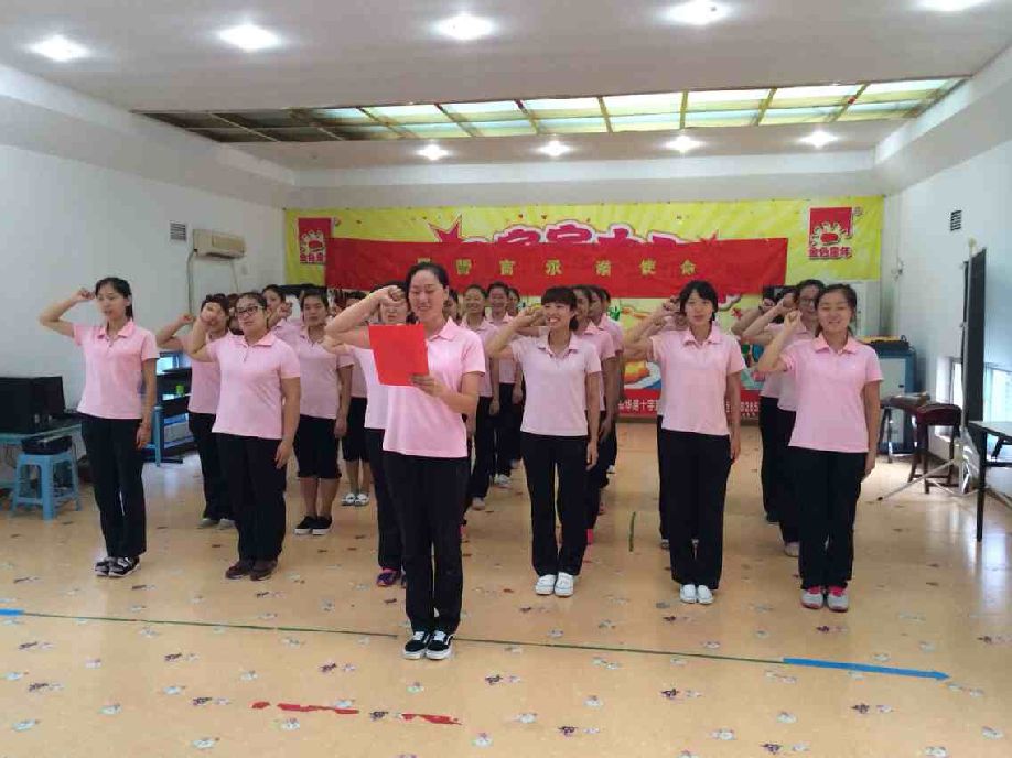 宣誓活动由姜珊老师带领,老师们齐诵誓词。一只只举过肩头的右手,一双双真挚鉴定的目光,嘹亮而坚定的声音,在园内久久回荡。
