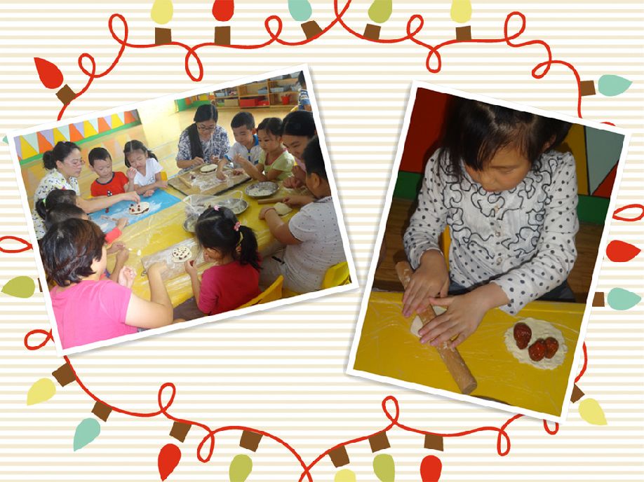 老师们精心准备,分别开展了“嫦娥奔月”、“月兔传说”以及“认识月饼”等相关活动。家长、老师和孩子一起做月儿,瞧,他们有的做面花,有的揉面,有的铺枣,忙得不亦乐乎。小朋友们在做月儿、分享月儿的过程中充分体验到了劳动的乐趣,同时也感受到了浓浓的节日氛围。