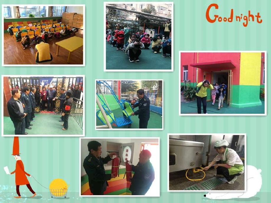 在此之间,幼儿园开展了多项活动,一是教师们采取了不同的教育方式,利用图片故事等方式,生动形象的向幼儿传授安全常识,让孩子能及时、直观的看到平时生活中存在的安全隐患,提高自我防护能力。二是组织教师对孩子展开了专门针对安全常识的安全演练,对交通安全;消防安全;防震安全等进行了详细的教育,让幼儿有了安全意识,并运用到生活中去,做到了全园动员、人人参与。三是严抓大门口的安全管理,成立家长安全护卫队,配合幼儿园门口安保执勤工作,实现家园共育,促使全体师生与家长的安全意识日趋加强。四是严格各方面的隐患排查。定期对全园环境、设备、活动场地、室内外玩具、电源开关及盥洗设备等进行检修,以便随时发现不安全因素。一定要将安全隐患消除在萌芽状态。