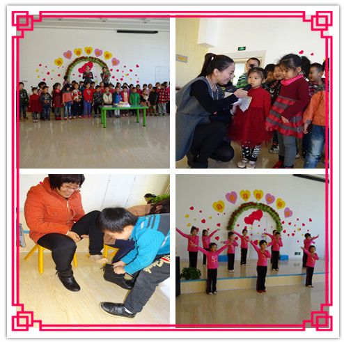 我孝亲 我成长 潍坊市机关幼儿园培真园即日进行了“我孝亲,我成长”生日宝宝大聚会活动。活动引导幼儿从为爸爸妈妈穿鞋子身边这件小事做起,尽一尽对父母的孝敬之心 。当孩子们蹲下身来,帮爸爸妈妈穿上鞋子,一位妈妈的眼睛立刻湿润了,她激动地说:我感到了从未有过的幸福!一位爸爸自豪地说:唉,养儿没白养啊!小朋友代表说:我为妈妈鞋子,我很快乐。 通过此次活动,让孩子们认识到父母的付出远远比山高、比海深,孝敬父母,尊敬长辈,是我们做人的本分,是天经地义的,尽孝要从现在开始,从一点一滴做起。在家时,要每天帮父母做一件家务,向父母说一句知心话,要像他们关心我们一样,让他们开心;在幼儿园,要做一个好孩子,让父母放心。 学会感恩,学会孝亲,相信这会使我们的生活更美好,使我们的世界更灿烂。