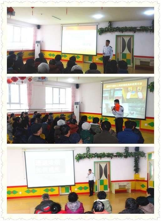 春节即将来临,为了进一步强化家长的消防安全意识,预防和减少各类火灾事故的发生。1月21日,潍坊市机关幼儿园北海园邀请了消防队的张教官来园,为家长朋友们作了一堂关于消防安全知识的讲座。 讲座上张教官将消防知识和幼儿园安全、家庭安全紧密联系起来,给大家上了生动而重要的一课。张教官向家长们讲述了消防基础知识和防灭火知识,主要就火灾的危害、如何避免火灾、如何自救逃生及如何使用消防工具等相关知识以及利用一系列触目惊心的照片和发生在我们身边的鲜活的案例向大家介绍了火灾的特性,讲述消防安全的重要性和必要性。讲座的气氛凝重而热烈、生动而幽默,让广大家长再次强化了消防意识,学习了火灾的自救、逃生的常识。 家长都表示此次讲座受益非浅,在以后的工作和生活中一定要注重消防安全,提高消防安全意识,向幼儿传授消防基本知识,为孩子们创设安全、舒适生活环境,让孩子们健康、快乐的成长。