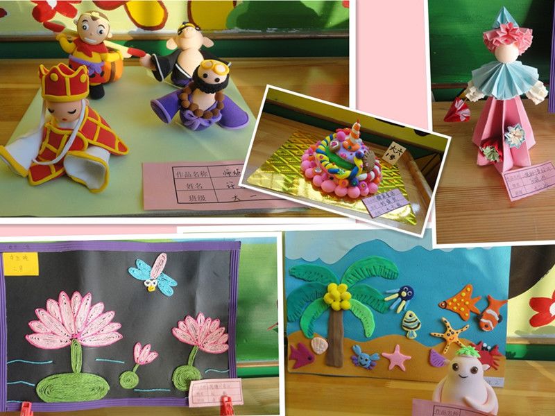 活动中,老师们各显神通,充分发挥自己的聪明才智,独具匠心地利用生活中的各种废旧材料,运用各具特色的艺术形式进行大胆的想象、灵活的创新,用灵巧的双手把那些不起眼的废旧材料魔术般地演变成了一件件精美的艺术品。这些作品创意新颖,内容丰富,富有环保性、趣味性、艺术性、教育性及多功能性,令人赏心悦目、赞叹不已,充分体现了教师们的艺术素质和较强的艺术创意。作品《荷塘月色》、《唐僧师徒行》、《胡巴》、《提伞的贵妇》、《花公鸡》、《甜美诱惑》、《多肉植物》、《潍坊海底世界》等等,更是以构思巧妙,做工精巧,获得了大家的好评。