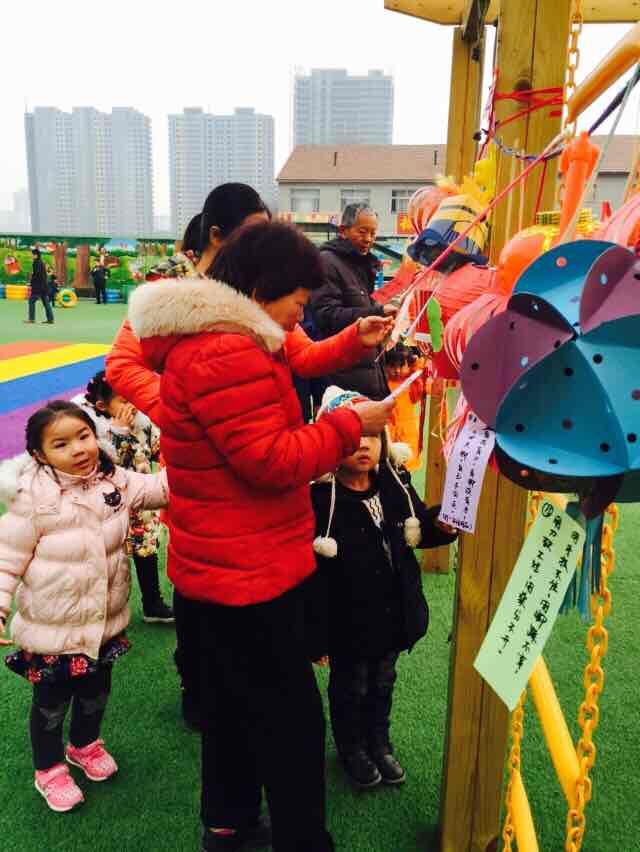 2016年2月23日下午,潍坊市机关幼儿园培真园开展了“赏花灯“猜灯谜”活动。 放眼望去,草坪上人山人海,张灯结彩,到处洋溢着浓浓的元宵佳节的热闹气氛。五彩缤纷的花灯,妙趣横生的灯谜让家长和孩子们不由得驻足流连。活动现场欢快的音乐为节日添上了喜庆的氛围,孩子们、家长朋友们都争先恐后,踊跃竞猜,表现出了极大的热情。谜语内容更是丰富多样,涉及知识面广、趣味性很强。猜中者喜得奖品,兴趣倍增;猜错者不气不馁,再接再厉。飘动的花灯、涌动的人群、欢声笑语,孩子们脸上洋溢着的灿烂笑容,使活动现场到处充满着喜庆祥和的欢乐气氛。 大家纷纷表示,这个活动组织的好,不但得到了知识,更收获了快乐。