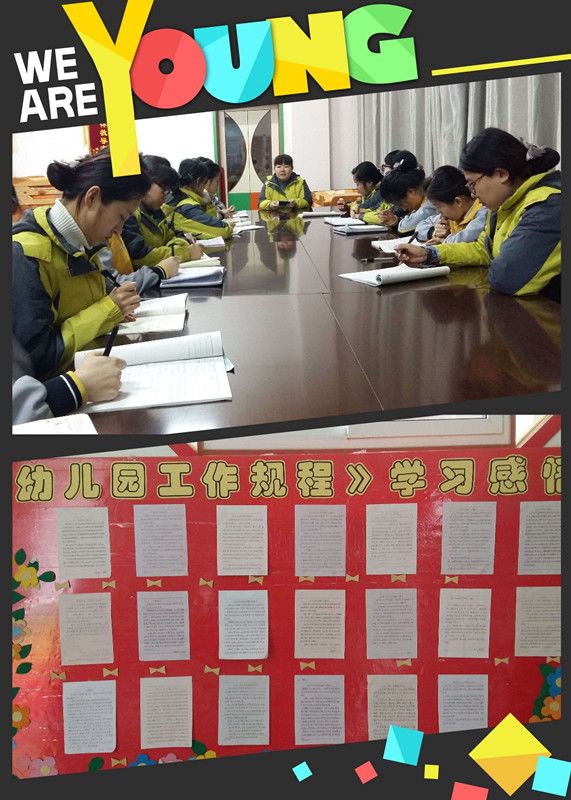 为进一步提升教师教育教学水平,提高保教质量,2016年3月7日,潍坊市机关幼儿园仁和分园组织教师对《幼儿园新工作规程》进行了学习与反思。 学习活动中,教师们对《规程》中的各项内容进行了认真细致的研读,并结合日常教学实践进行研究讨论和反思。 通过学习,教师们进一步领会了《幼儿园新工作规程》中的精神,更加明确了教师在幼儿一日活动中应遵循的原则和要求,对教师的日常教育教学工作将起到指导性作用。