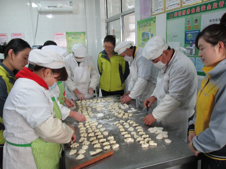 为了进一步提高幼儿园饮食质量,展示炊事员的厨艺水平,仁和分园于3月23日开展了厨师面点创新比赛活动。 厨房5名工作人员参加比赛,请5名老师担任评委。比赛分为5个部分,每项占20分,从揉面开始,通过擀面、抹油、卷面、切面、捏面各个步骤,做的精巧、均匀,符合孩子饮食特点的胜出,5人分别得出成绩。比赛现场气氛紧张而快乐,评委打分公平而热烈。 通过这次活动,提高了炊事员的厨艺水平,激发了他们的创新意识,为幼儿的健康饮食奠定了良好基础。