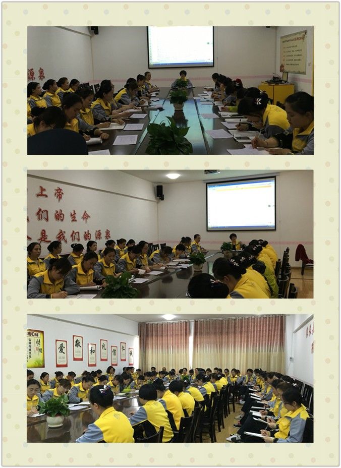 4月25日晚,北海园在五楼会议室召开全体教职工大会,刘宁园长对省十佳创评工作进行了总结,对部分在创评中表现突出的班组、个人提出表扬,并在物品规范、教育教学、卫生清洁、安全管理等方面对今后的工作提出新的更高要求,力争取得更好成绩。