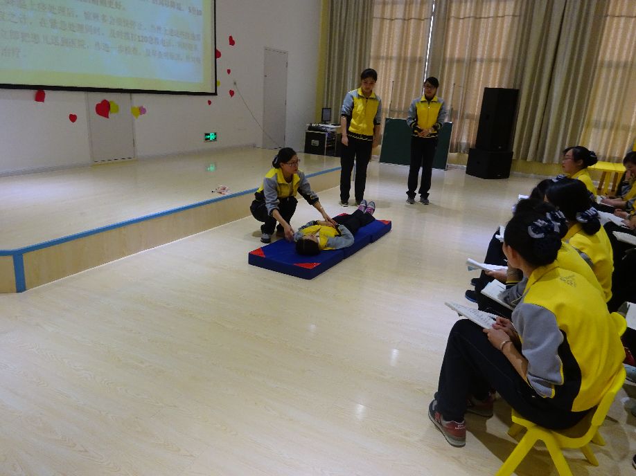 应急事故处理培训 为了提高教师们对突发的事故应急处理能力,4月27日,培真园组织全体教师进行应急事故处理培训。 培训中保健医王璐用课件、实际操作的方式,让老师们详细了解了幼儿高热惊厥、鼻出血、异物吸入、关节脱位、骨折、烧烫伤、中暑等常见的突发事故的诱因、症状、紧急处理方法和预防措施,并且让老师们互相配合模拟班内突发状况时如何操作。 本次培训内容具体,适用性强,切实提高了教师们预防幼儿意外伤害的意识,也使大家学会了幼儿常见意外伤害的处理措施,从而最大程度地保障幼儿的生命安全,促进幼儿园健康发展。