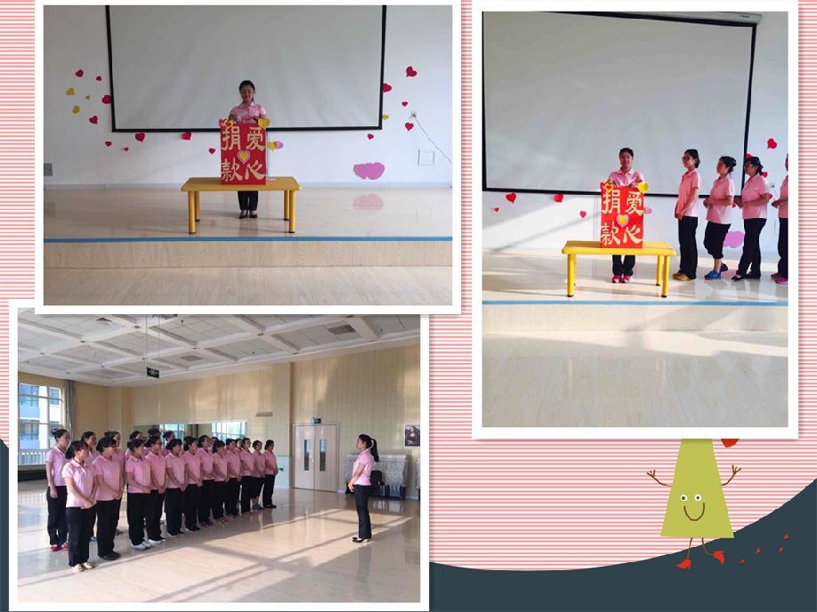 在第六十六个六一国际儿童节来临之际,潍坊市机关幼儿园培真教育幼儿园青年团发起以“关注弱势儿童,庆六一献爱心”为主题的募捐活动,全体教职工于2016年5月25日在二楼多媒体教室参加了此次活动,大家积极参与并纷纷献出自己的爱心。 据悉,培真园会将本次募捐的全部费用购买成生活品,由青年团代表在第一时间送往潍坊市福利院,让这些弱势的孩子们感受到生命的美好和社会的温暖。