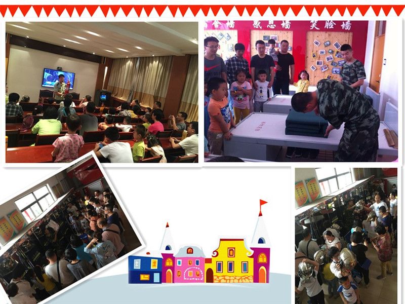 活动中,消防官兵首先给幼儿和家长朋友们介绍了消防车辆和随车器材装备,然后结合车库内悬挂的消防宣传画,给大家讲授火灾预防常识及发生火灾时的注意事项等消防安全知识,并对如何报警、自救、逃生等进行了详细的讲解,消防员叔叔还打开车上的一扇扇小门,用浅显的语言给大家介绍了许多消防车上的小秘密:消防器械、高压水枪、防毒面罩、氧气瓶、急救箱等消防装备。孩子们参观了消防叔叔的休息室和学习室,看到那些有棱有角的被褥和摆放整齐的各类物品,孩子们都忍不住惊叹起来:“哇,好整齐哦!”消防员叔叔还手把手的教小朋友叠被子,孩子们摸着方方正正的被角,从心底佩服消防员叔叔。最后,孩子们观看了消防官兵户外穿消防制服、高压水枪等业务技能表演。表演完毕,孩子们争先恐后地尝试穿消防服,调高压水枪,上消防车等技能。每个孩子的脸上都洋溢着自豪和满足的笑容。