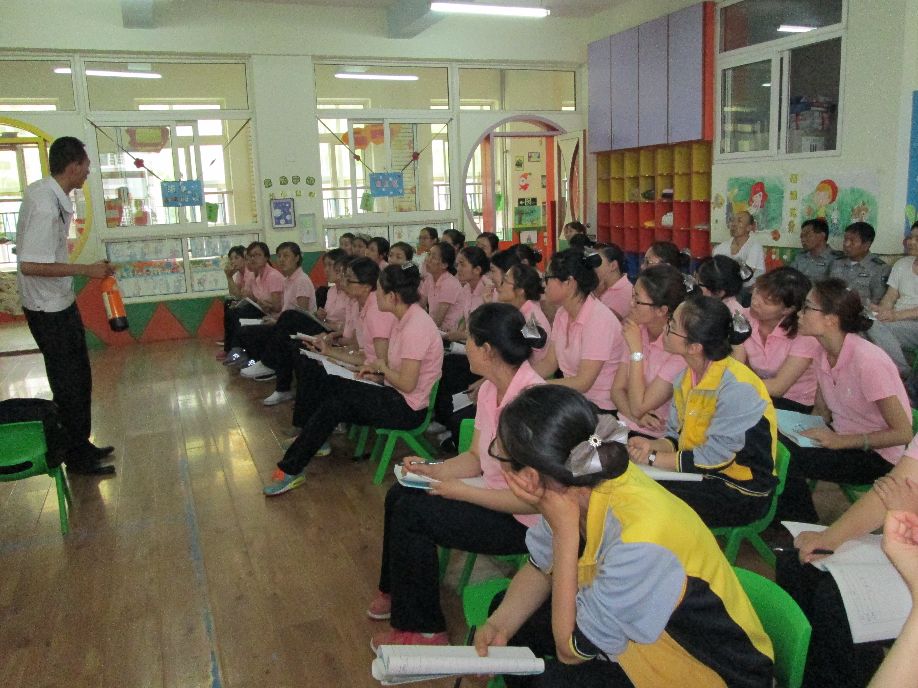 为提高全园教职员工的消防安全意识,掌握灭火、自救、逃生知识,远离火灾,2016年6月12日,潍坊机关幼儿园仁和分园邀请了潍坊市政安防火宣教中心吴教官,为全园教职员工上了一堂生动的消防安全知识课。