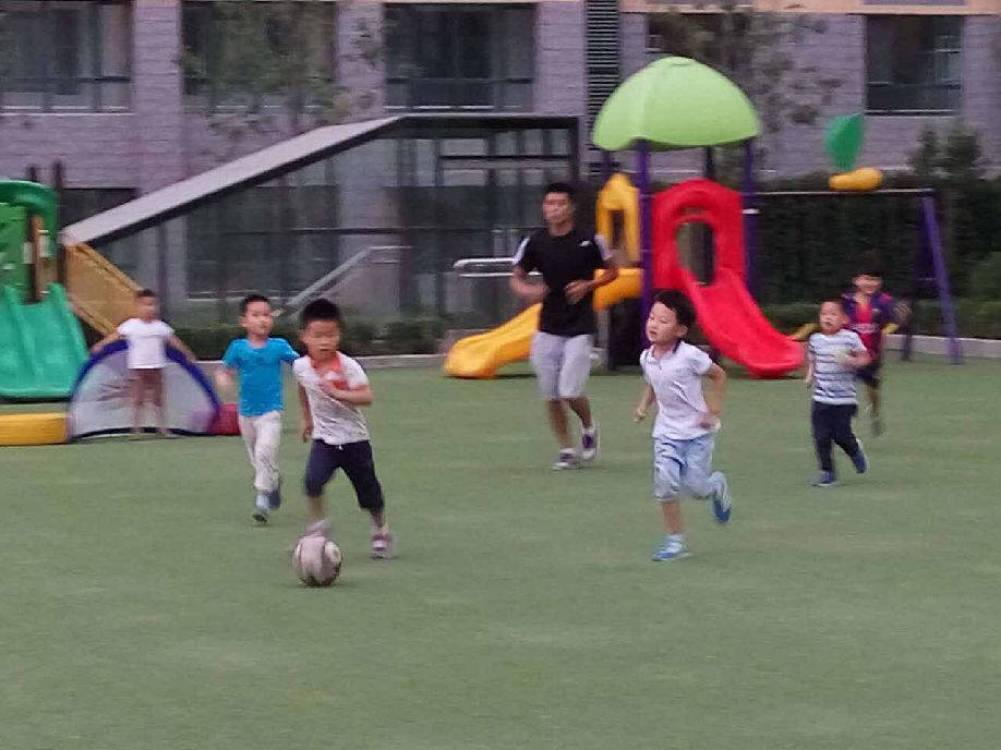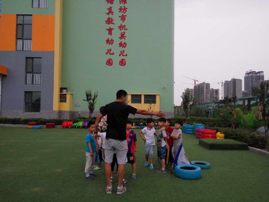 这是潍坊市机关幼儿园培真园足球队的训练现场。孩子们在这里训练了体力,培养了耐力,形成了集体主义荣誉感。