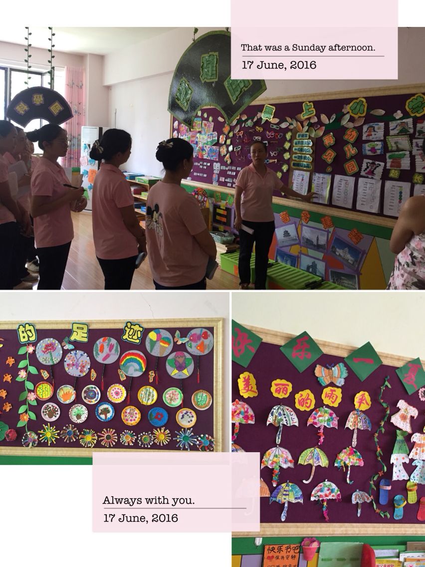 活动中,老师们带着欣赏与学习的心态走进每个班级、认真聆听班主任对夏天主题墙饰的讲解,相互探讨环境创设对孩子的启发,,让幼儿真正在与主题墙的互动中成长,使主题墙成为幼儿、家长对话的窗口。深刻领悟“ 孩子是环境的主人”的教育理念。