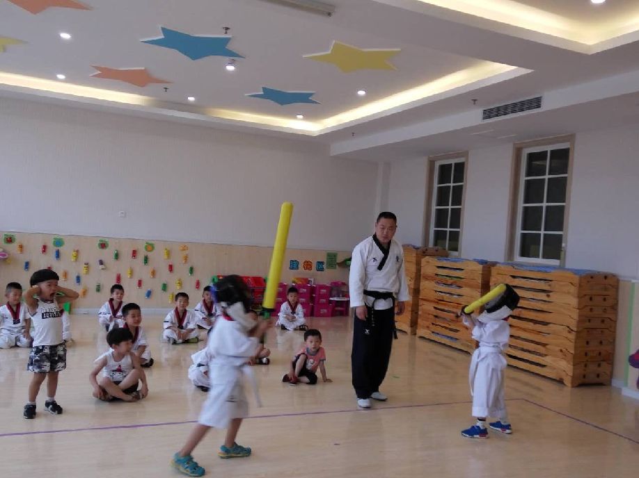 “以礼始,以礼终”的礼节,一丝不苟。迅速有力的出击,准确灵活的躲闪,拳脚并用的艺术方法,每每叫人赞叹不已。这是潍坊市机关幼儿园培真园特色活动——跆拳道班级的小朋友们活动中。