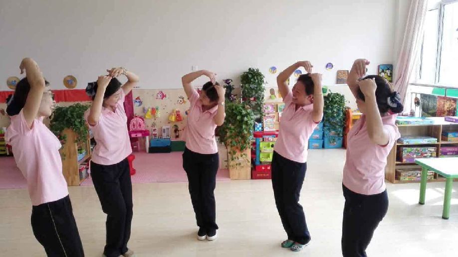 在优美、活泼的音乐声中,教师们表演了欢快的热身运动、队形队列、早操操节、游戏活动、集体舞蹈等。幼儿早操动作简单易学、舒展大方,能很好地锻炼幼儿的肌肉、关节和韧带,增强幼儿的身体机能。