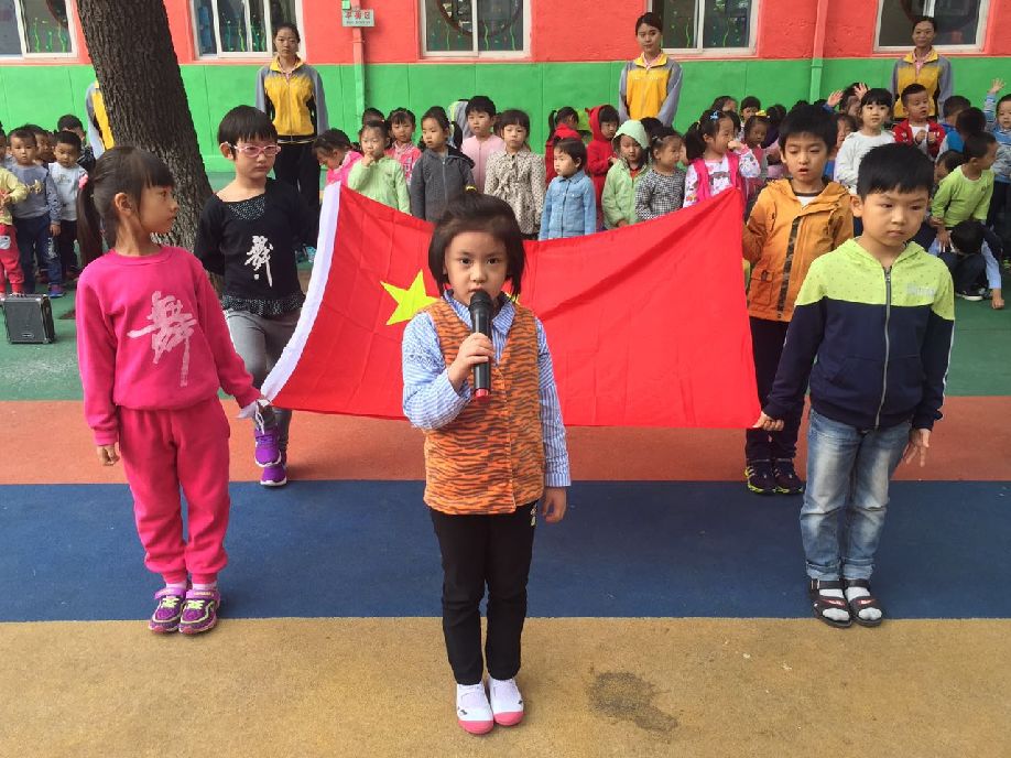 国旗国旗我爱您,五颗星星黄黄的,升到天空高高的,我们心中甜甜的!”在伟大祖国即将迎来 67