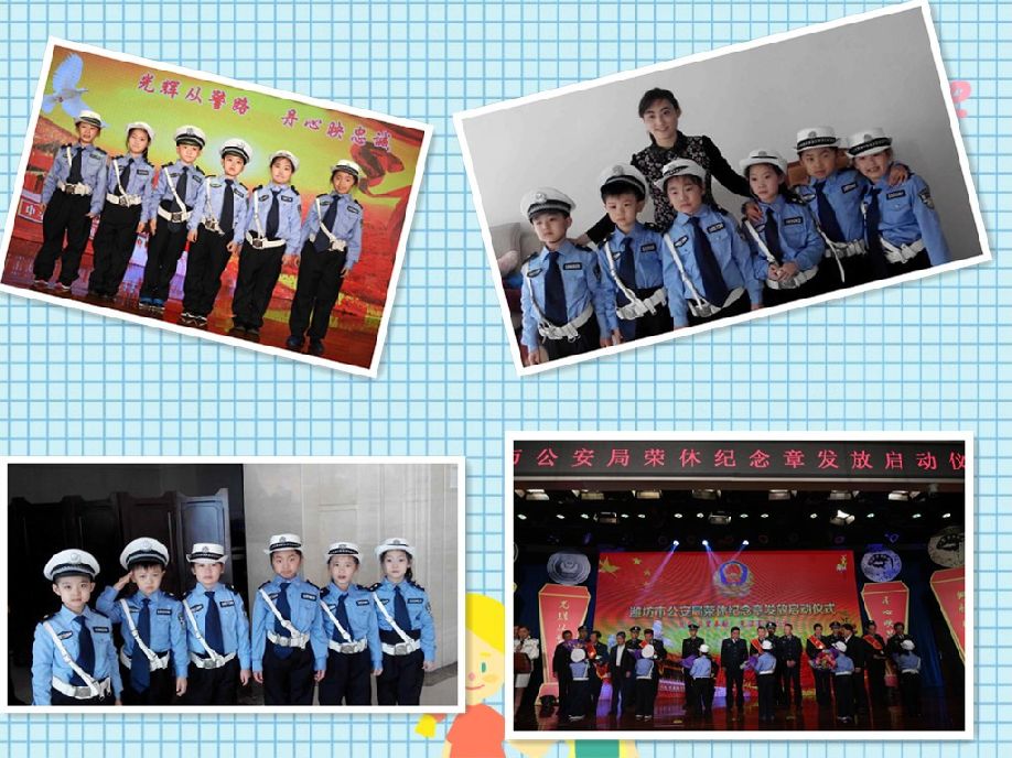 在老师的带领下,孩子们兴致勃勃的来到了公安局。公安局的叔叔、阿姨热情的接待了充满好奇心的孩子们,并为孩子们准备了一份特殊的荣耀——警服,瞧,孩子们穿上警服,英姿飒爽、神采奕奕,好神气。活动开始了,气质而又漂亮的公安阿姨开启了活动仪式,接着孩子们观看了的纪录片,了解到公安爷爷工作的特殊和辛苦,最后孩子们上台为爷爷们献花,祝公安爷爷幸福、安康、长寿,场面温馨而感动。最后孩子跟老公安们一起合影留念。 |