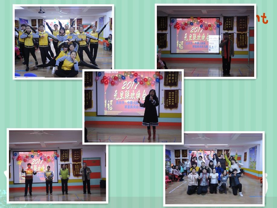 晚会在小班级部老师激情魅力的舞蹈《小苹果》中拉开了序幕,伴着老师美妙动听的歌声,终于盼来了由保安唐师傅为大家亲手制作的冰糖葫芦和后勤部的语言节目《三句半》,接着是中班级部和大班级部带来的搞笑舞蹈《咋了爸爸》和《舞蹈串烧》......郭园长的歌曲《踏浪》将活动推向了高潮。最后郭园长发表新年贺辞,预祝老师们在新的一年里工作顺利,生活更加美好!