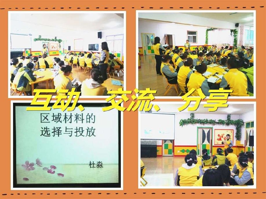 本次教研活动是继“怎样开展区域活动”之后,在保教主任于兰的组织下开展的区域活动二次教研活动。活动分为展示分享、剖析解读、评价交流、理论指导等五个环节。于兰主任以专业的知识储备和丰富的经验为老师们进行了剖析解读,并深入小组进行互动交流,让老师们更深入地了解了各年龄段幼儿适合的材料,以及投放材料的多元化取材。小、中、大班的王仁双、王晓凤、李雪洁等老师根据自己班的实际情况进行了特色区域展示分享。杜淼老师就自身多年的实践经验,为大家做了详细的理论指导与分析,老师们受益匪浅。