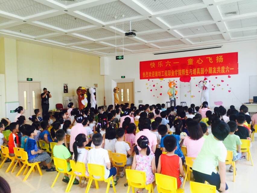 为了庆祝“六一”儿童节的到来,2017年6月1日,培真园邀请潍坊工程职业学院的学生,给在园的孩子表演了三场童话剧。