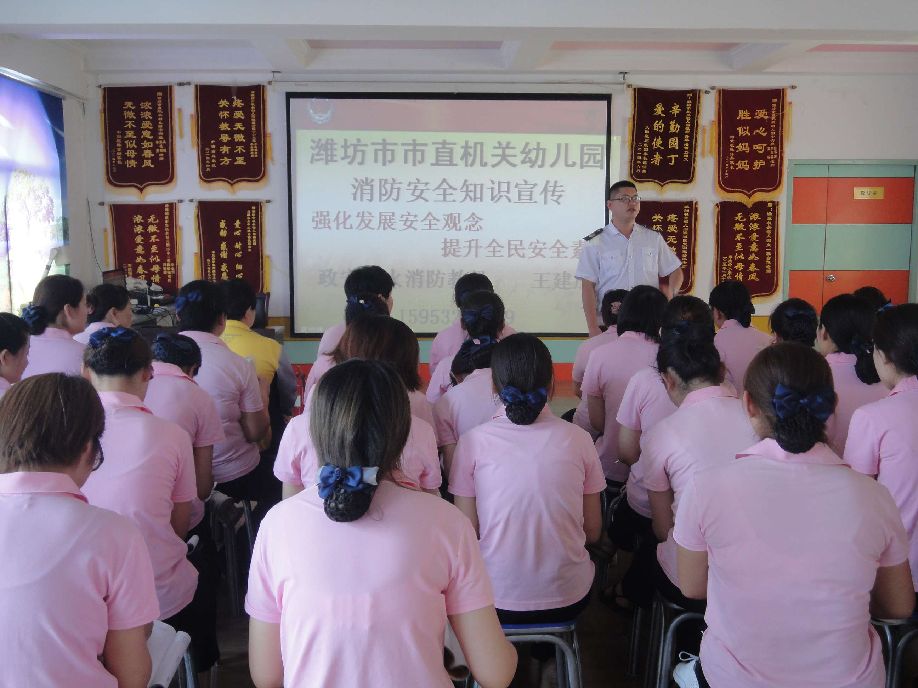 为了切实做好消防安全工作,提高安全防范意识,增强自防自救能力,2017年6月15日,潍坊市机关幼儿园潍城分园邀请了潍坊市政安防火中心王教官为教职工进行了消防安全知识教育培训。