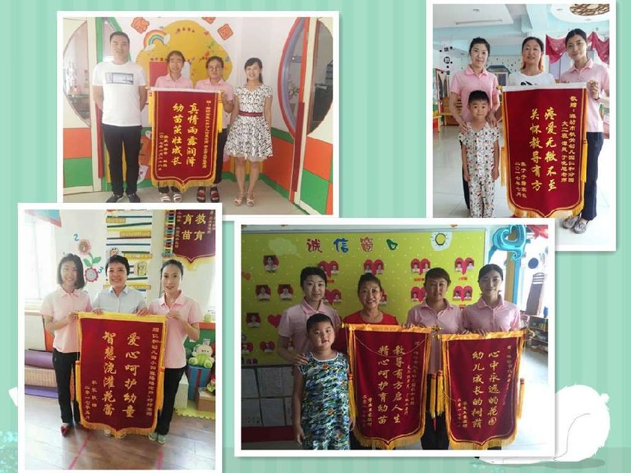 一面面鲜红的锦旗挂在了教室墙壁上,这是一个新的开始,它们提醒着我们每一位老师要努力工作,勤学苦练提升自己,服务好每一位家长和幼儿,家长满意就是我们工作的源泉。