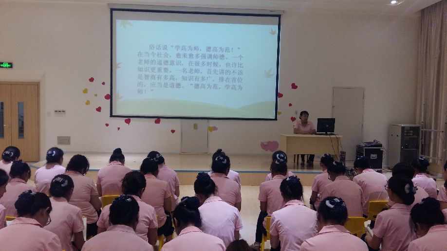 张萌园长通过PPT,从师德篇、敬业篇、礼仪篇这三大主题来强调师德师风的重要性和传递当今社会好老师的标准和要求。最后刘敏园长对本次师德师风培训进行了小结,要求全体教职工在今后的工作中要坚持把弘扬高尚师德,力行师德规范,提高师德水平,争当师德楷模作为主题,争当社会满意教师,树立良好的职业形象。