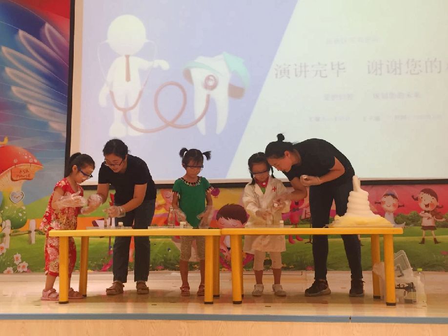 8月21日下午,潍坊市机关幼儿园培真园邀请了中三班王子涵的爸爸妈妈——贝贝口腔工作室的牙医,来园给孩子们上了一节生动、有趣的健康课《保护牙齿》,孩子们听的津津有味,并做了好玩的科学实验。 通过这次家长进课堂活动,孩子们不仅了解到如何去保护好牙齿以及刷牙的重要性,也了解了乳牙到5、6岁时就会脱落,长出新的恒牙,激发了幼儿保护牙齿的欲望。