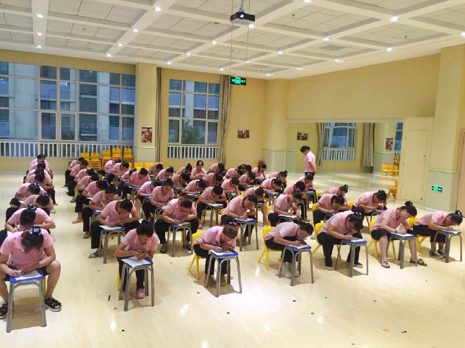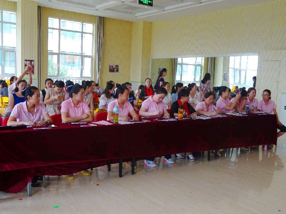 为充分调动培真园教职工的积极性和主动性,提高教师的服务意识、竞争意识,优化教师队伍,使素质高、思想进步、业务能力强的教师能够更加积极主动地投入到工作岗位上,潍坊市机关幼儿园培真园于8月18日晚召开了教师竞岗动员大会,张萌园长介绍了本次竞争上岗的规则要求和时间,以及优化组合的要求,在大会中教师根据自己的意愿申请了竞聘岗位。动员会议后我们开始了紧张的《教师职业道德规范》考试。 19日清晨,迎着淅沥沥的小雨,集团领导姚静部长也专程来参加培真园教师的竞岗活动。