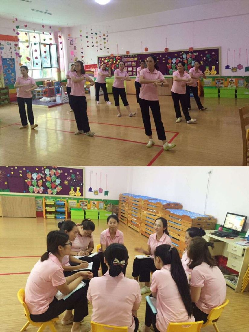活动中,教师们观看了新早操并对早操编排进行了研讨,教师们畅所欲言,纷纷提出自己独特的见解。随后,全体教师从早操的内容、结构、组织形式等进行了相关的理论知识学习,使大家明确了早操创编要尊重幼儿的年龄特点和动作发展特点,从音乐选择、动作编排、队形变化、师幼互动等多方面考虑。这样,早操创编才有实效,早操活动才能调动幼儿积极性,早操锻炼才有价值。