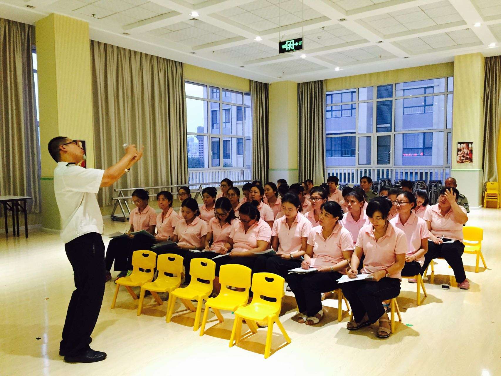 为了增强全体教职工的消防安全意识,2017年9月21日,潍坊市机关幼儿园培真园邀请市政安防火宣教中心的石教官为教职工进行了一场精彩的消防知识培训讲座。