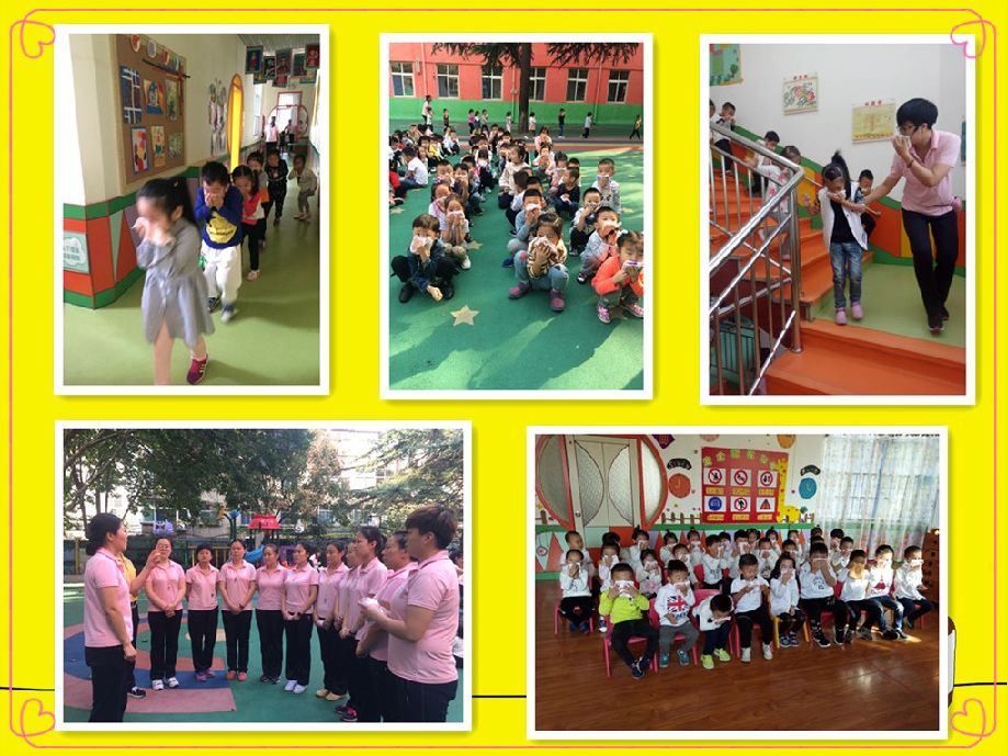 各班教师先对孩子讲授了如何防止火灾发生、如何正确拨打“119”火警电话,以及火场逃生的动作要领及方法等消防常识,并叮嘱小朋友们在疏散演练中过程中不要慌张,遵循老师指引,排队有序撤离。下午3:10分,忽然听到紧急的警报声,各班教师迅速按紧急预案的疏散线路带领幼儿拿起湿毛巾,捂住口鼻,猫着身子,分两道楼梯迅速且有序下楼。很快孩子们集中到操场安全地带,教师迅速地清点人数,并向总指挥报告。整个疏散活动只用了3分多钟。活动目的是为了让孩子从小学会自我保护,遇到火警懂得快捷、有效的逃生的办法。