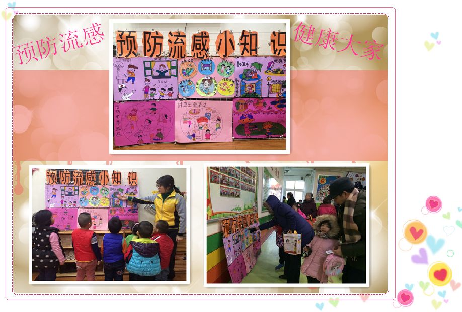 为了让家长老师小朋友了解更多关于如何让预防流感的知识,老师们搜集了许多关于预防流感的资料,采用宣传展板的形式来提醒大家一起预防,并对幼儿进行卫生习惯、行为习惯养成教育,让幼儿掌握简单、科学的卫生生活常识进行了教育,让家长、孩子教师增强自我保护意识,减少流行病的发生,保证身体的健康。