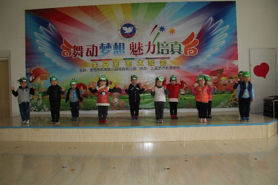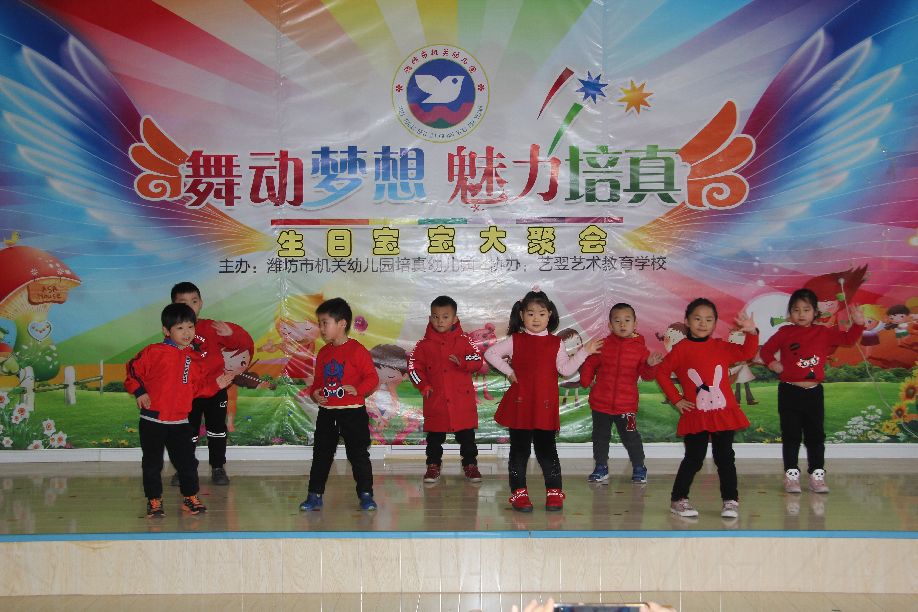 在这温暖的大家庭里,有一群小宝贝给生日宝宝送来了祝福,生日宝宝们也纷纷参与了节目表演,中班小朋友带领大家《向快乐出发》,小班小朋友朗诵表演了《春晓》,大班哥哥姐姐为大家带来《加加油》为新的一年鼓劲。孩子们在有趣的游戏当中度过了一个喜悦而温馨的生日。