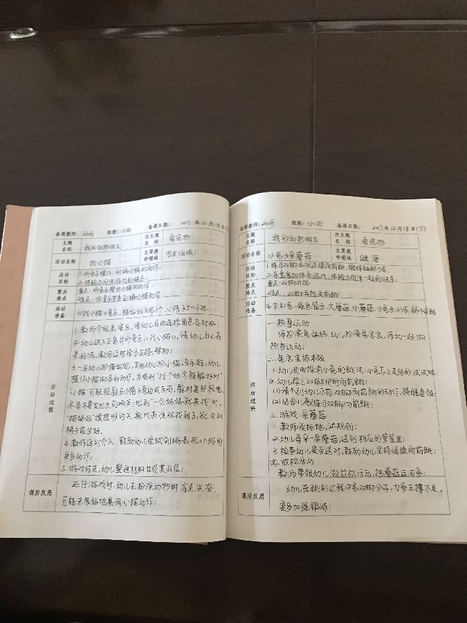 备课是教师开展教育教学工作的依据,是每位教师每天的必备工作。为促使教师备好课,落实好主题教学,增进教师之间的相互学习和交流,2018年1月31日下午,北海园刘新蕊主任组织全体班主任在五楼会议室进行了备课本、观察记录的展示和评比活动。