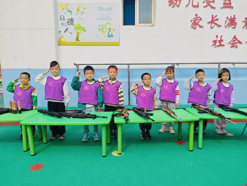 为启蒙幼儿国防意识,厚植家国情怀,我园于十月一来临之际,为幼儿精心策划了一场以“童心筑梦,强国有我”为主题的国防教育体验活动。